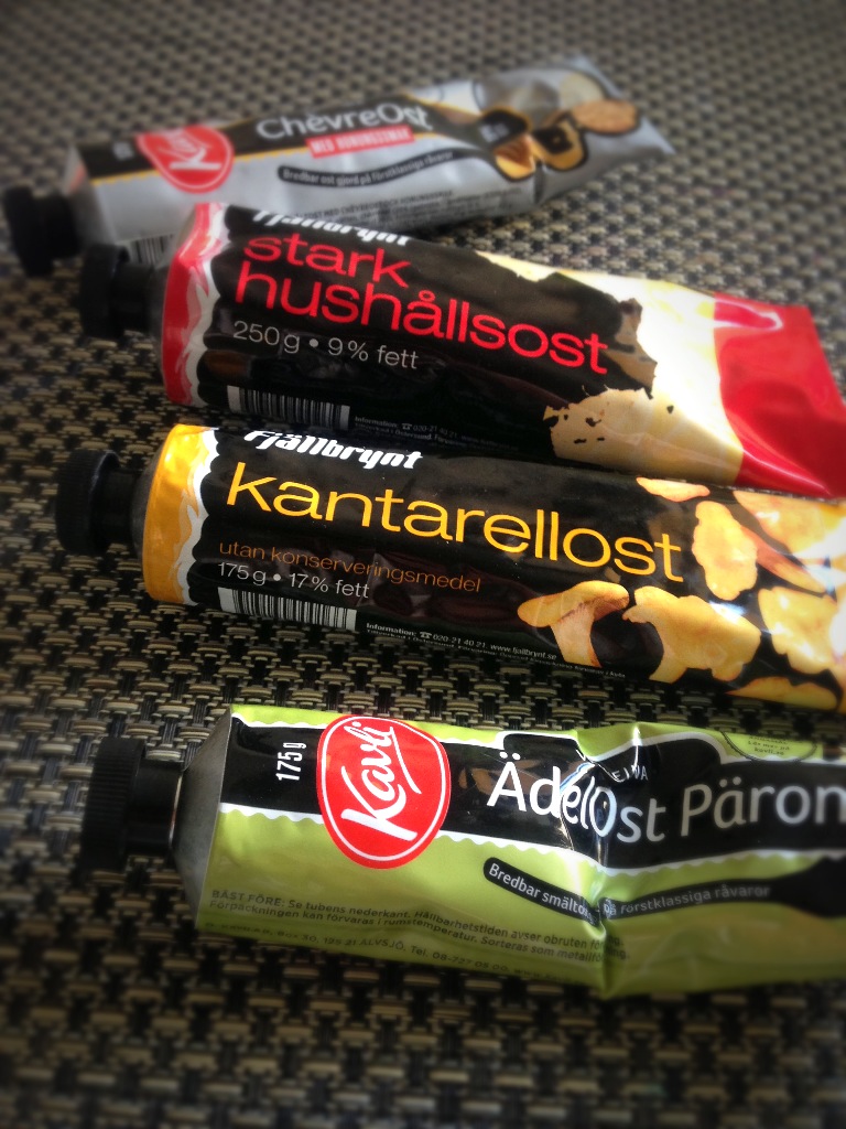 Jag ställde mig alltså vid tubosthyllan och valde några för mig osmakade varianter. De som hamnade i korgen var inte nyheter på något sätt, utan bara utvalda pga nyfikenhet. Det blev tre ostostar och en svampost.