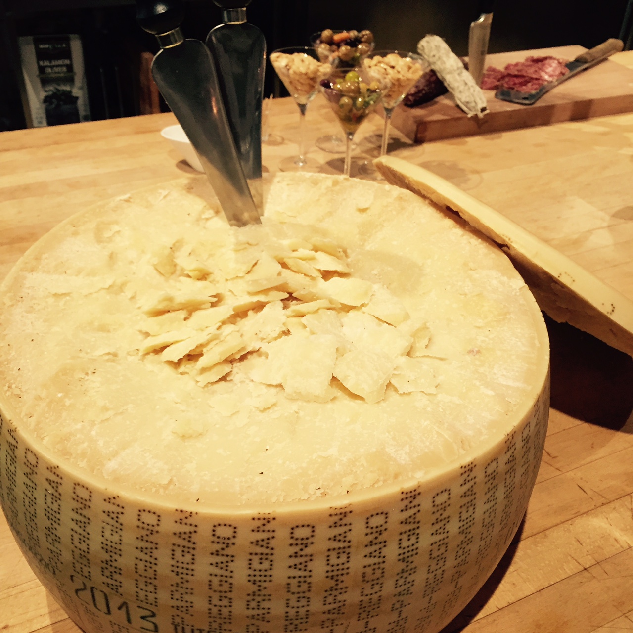 Det här med att vara dubbelarbetande, det är helt okej. Ett parmesanhjul stod öppet bakom kulisserna i butiken, redo att delas i mindre bitar. Och Mr Ost sa att jag fick ostens kärna om jag ville ha. OM?! Det är löjligt hur mycket i himlen jag är. Att man kan bli så uppspelt bredvid en stor ost och dessutom bli erbjuden the center piece, priceless.
