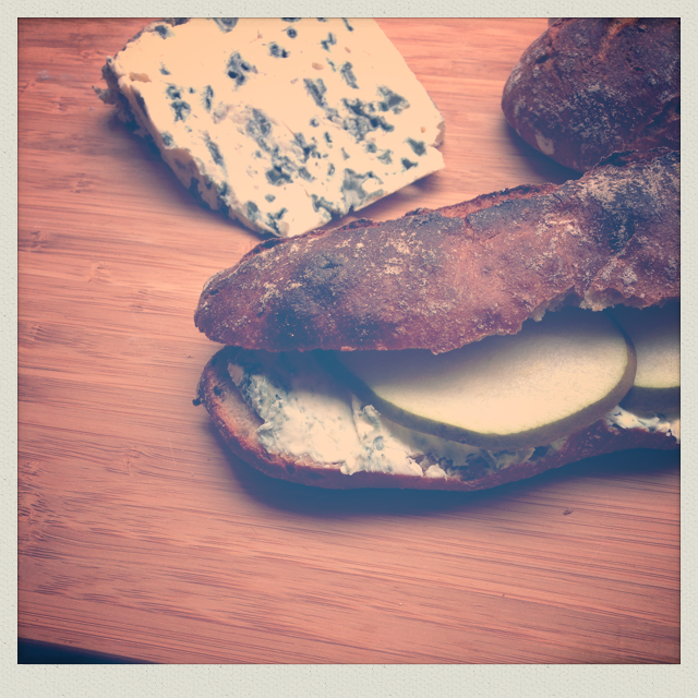 Kan inte tänka mig ett bättre sätt att börja helgen på än att lägga vantarna på en bit osande blåmögel. Och den här gången blev det festligt värre eftersom jag kommit över en Blue Monday. Blur-basisten Alex James baby är en prisbelönt blåmögel och eventuellt den vackraste jag sett. Grönblå sirlig marmorering mot gräddgul botten. I sin förpackning känns den inte så hantverksmässig som den är, men där inne möter jag en bit genuinitet. Man ser ojämnheten i kanterna som maskiner inte ger. Bara att hålla i en Blur-ost känns stort på något sätt. Två avgudade grejer i ett.